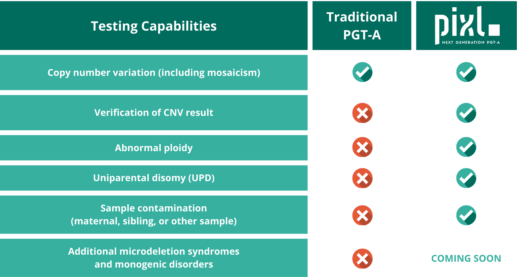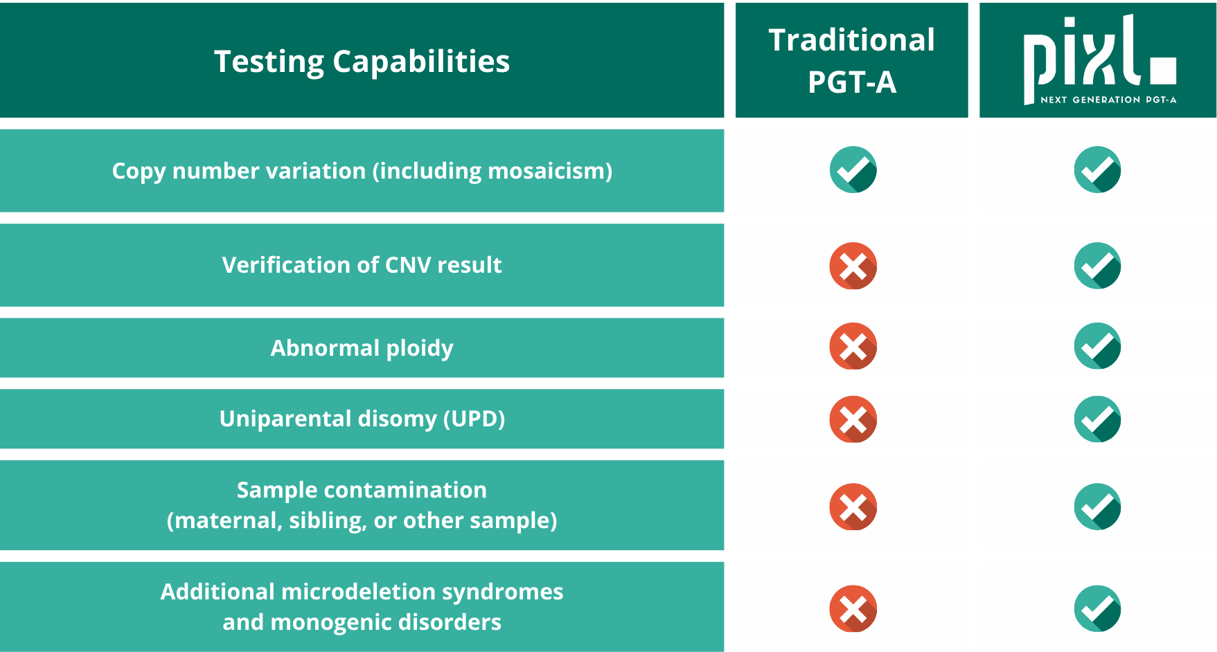 Beyond standard aneuploidy screening, PGT-A Pixl also detects: